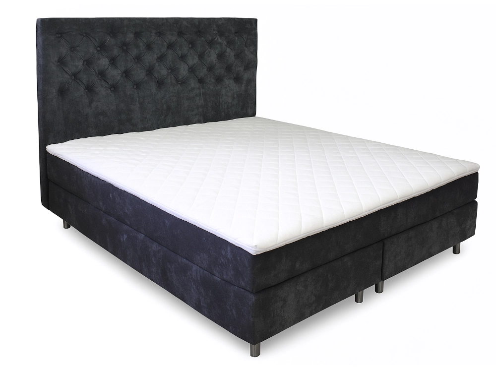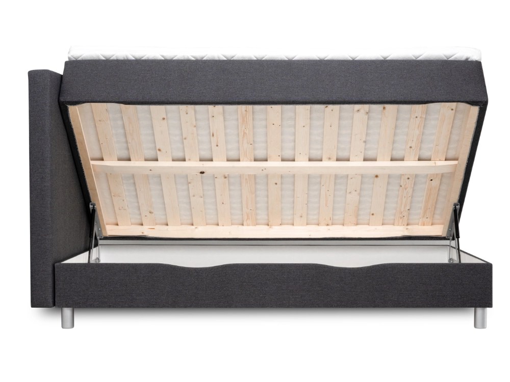 - Voodi on tumehallist mööblikangast, mis loob stiilse ja klassikalise välimuse.